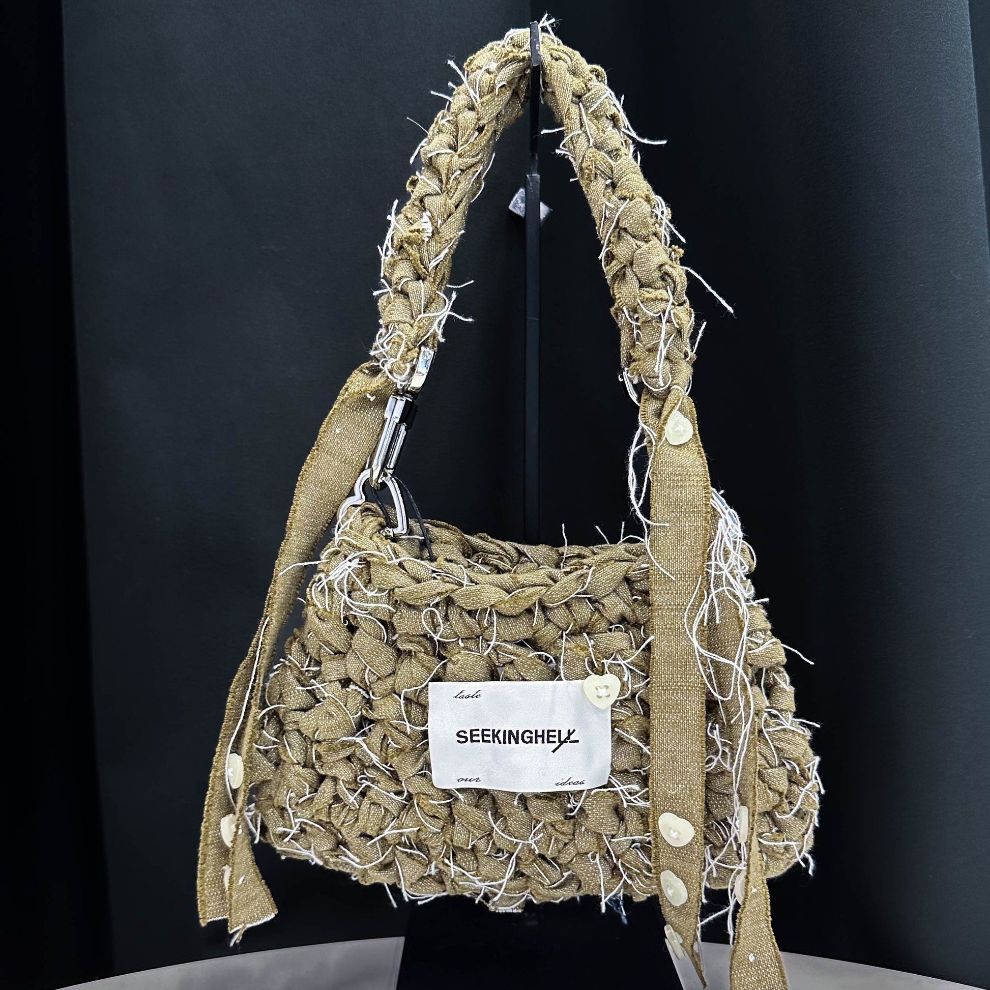SEEKINGHEL_ is a brand that originates from the ambiguity of "HELP" and "HELL'. Embraces the ideology of chaos and uncertainty, and believes mistakes are destined to create something beautiful and unique. SEEKINGHEL_ creat with limitless particular style and aesthetic, challenging traditional norms and allowing for beautiful and unexpected outcomes.