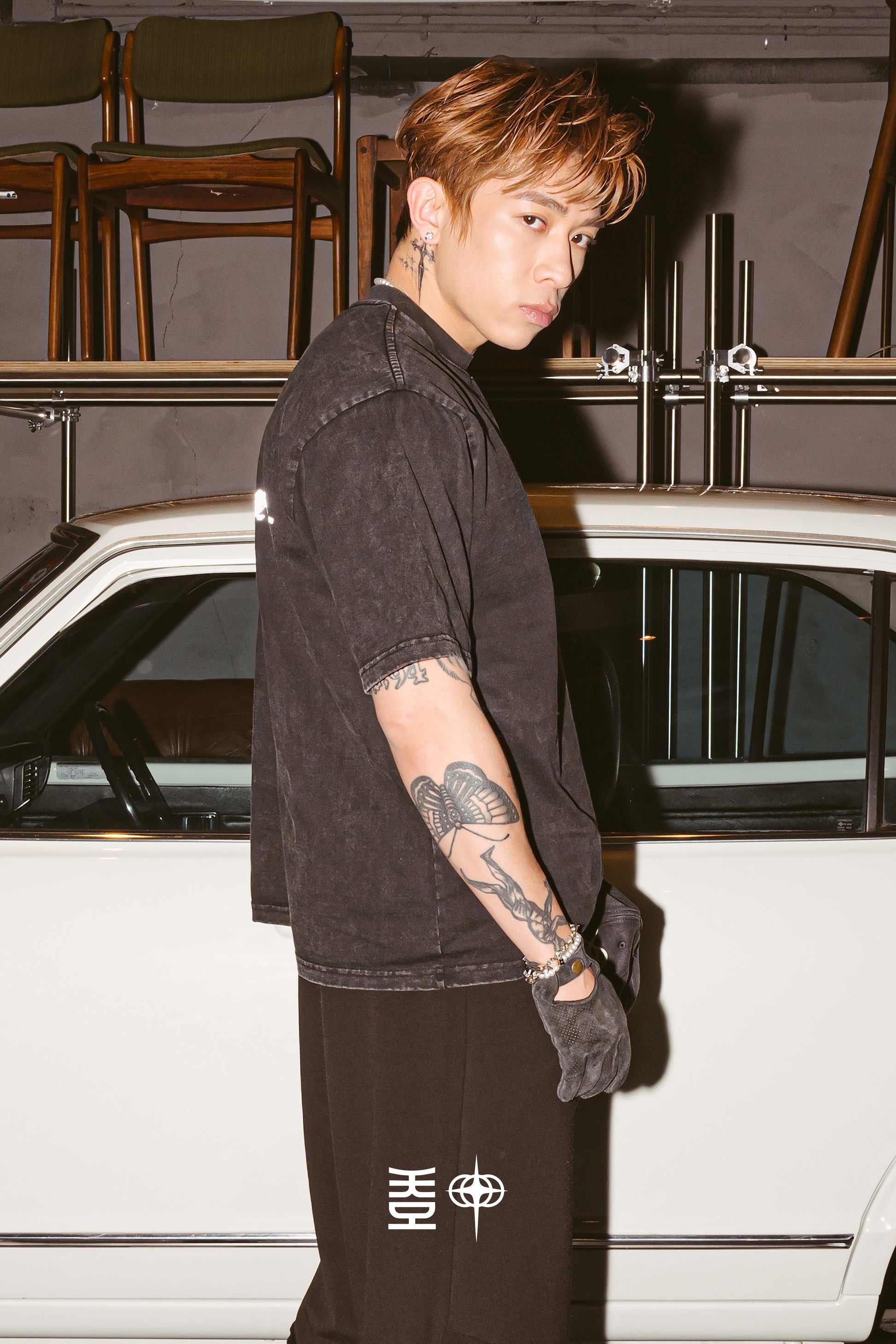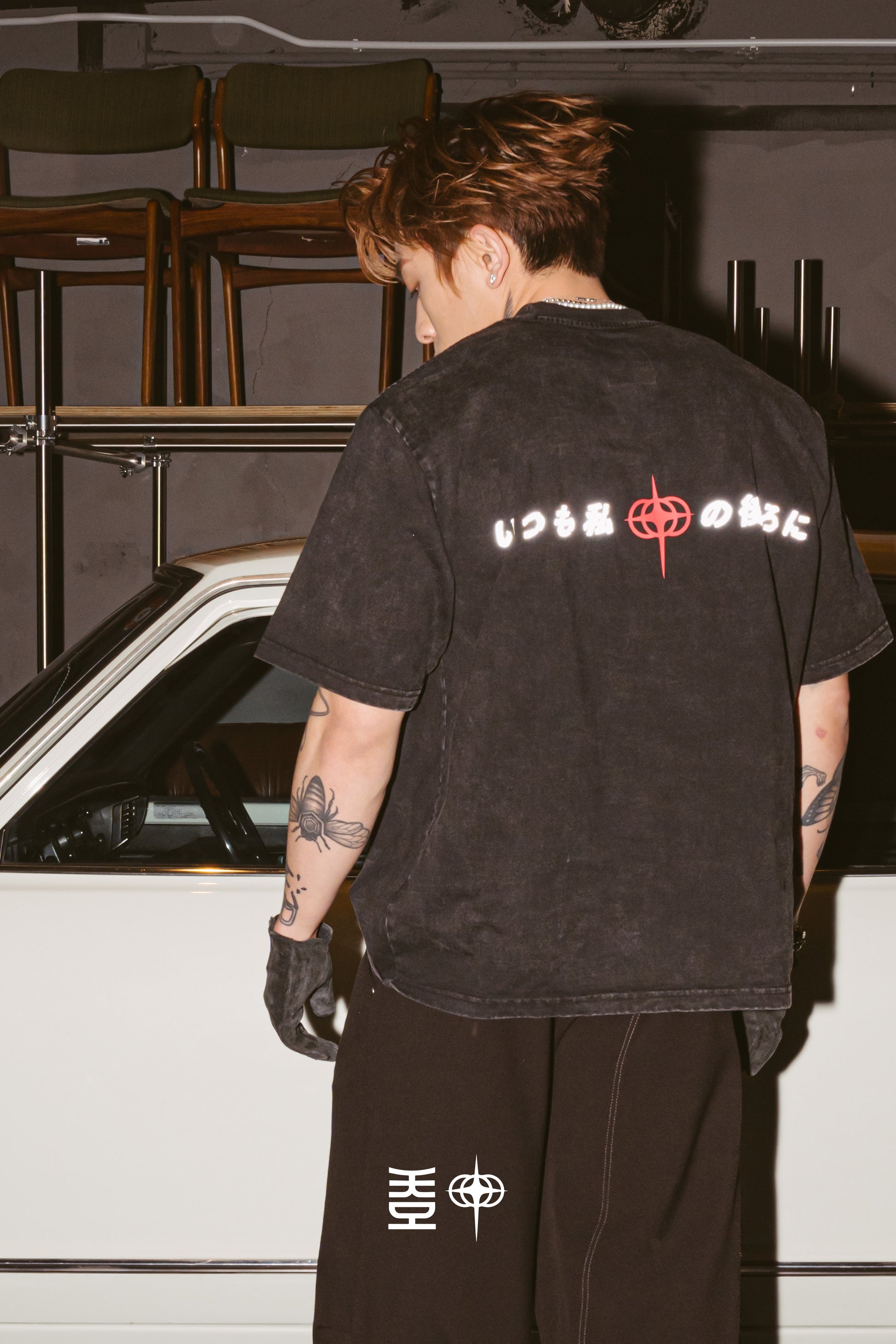 將MR2經典車輪與速度錶融入Triplets標誌,以動態模糊展現飄移速度感。標誌上的四角星加入金屬質感,配合反光印花模仿車頭燈效果。以牛仔洗水破爛呈現復古掉漆象徵JDM懷舊情懷,並融入《頭文字D》風格的日文刺繡,突顯MR2的經典JDM身份。背後的「always behind me」傳達了無論是你還是你的車,都只能在我身後,無法追上我的步伐。