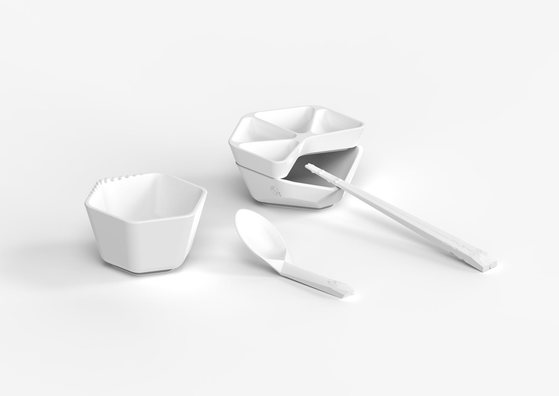 「原石」從日常的中國用餐體驗中汲取靈感,創造出一套現代餐具,融合了原石的自然美,兼顧了形式、功能和人體工程學。 每套餐具包括湯碗、飯碗、盤子、筷子、勺子和醬盤,滿足用餐體驗的每一個細節。